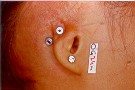 La técnica que hemos desarrollado para la rehabilitación del pabellón auricular es la Epítesis Implantoportada, que consiste en la fijación de un pabellón protético elaborado con siliconas especialmente formuladas para uso médico, sobre dos implantes de titanio practicados en la cortical mastoidea. El pabellón protético está provisto de una barra de sostén a este efecto y su textura, peso y color son parecidos a la del pabellón real. Los resultados obtenidos han sido excelentes en todos los casos tratados. En el caso de los niños, las ventajas son evidentes: una sola intervención, el pabellón crece con el niño (se cambia para equiparar el pabellón colateral, sin nueva cirugía, no quedan cicatrices y, desde el punto de vista psicológico, se produce una transformación radical en la imágen personal, lo cual se traduce inmediatamente en una profunda modificación de la expresión facial.
